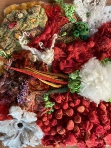 Kleur, emotie en het creatieve proces zijn voor mij belangrijker dan perfect uitgevoerde technieken. Ik begin meestal met een idee, geef de wol haar vrijheid en ga door tot ik tevreden met het resultaat ben.